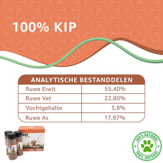 Geef de maaltijd van je hond een smakelijke boost met deze 100% natuurlijke topping van kip. Perfect als toevoeging aan nat- of droogvoer en ideaal voor kieskeurige eters.